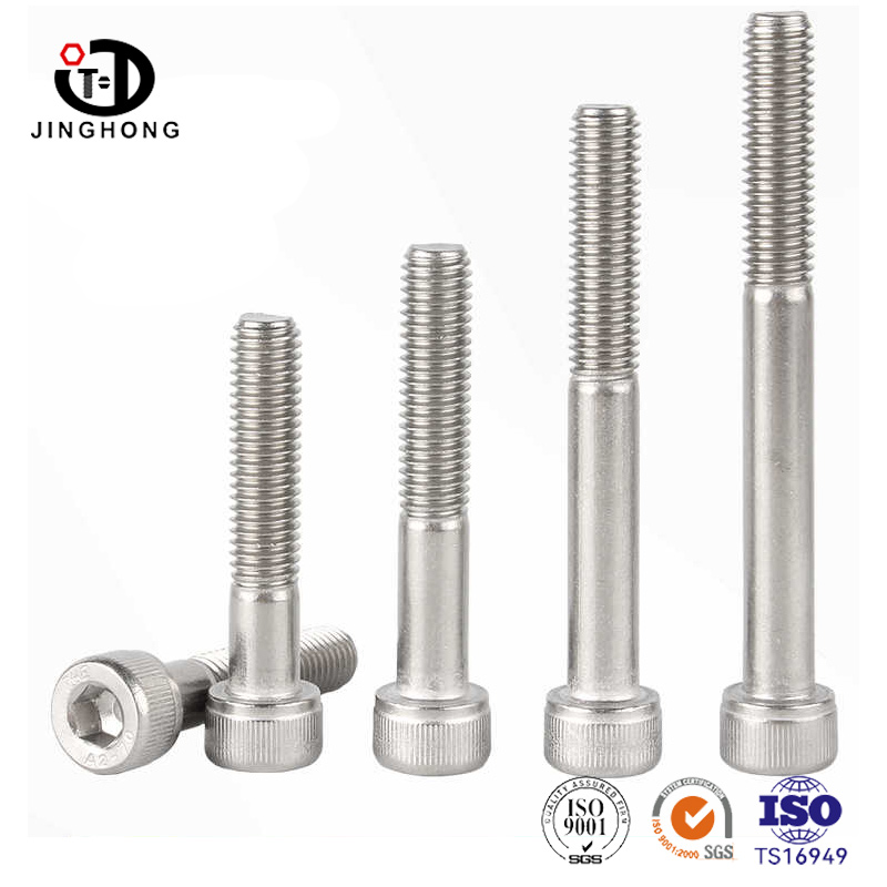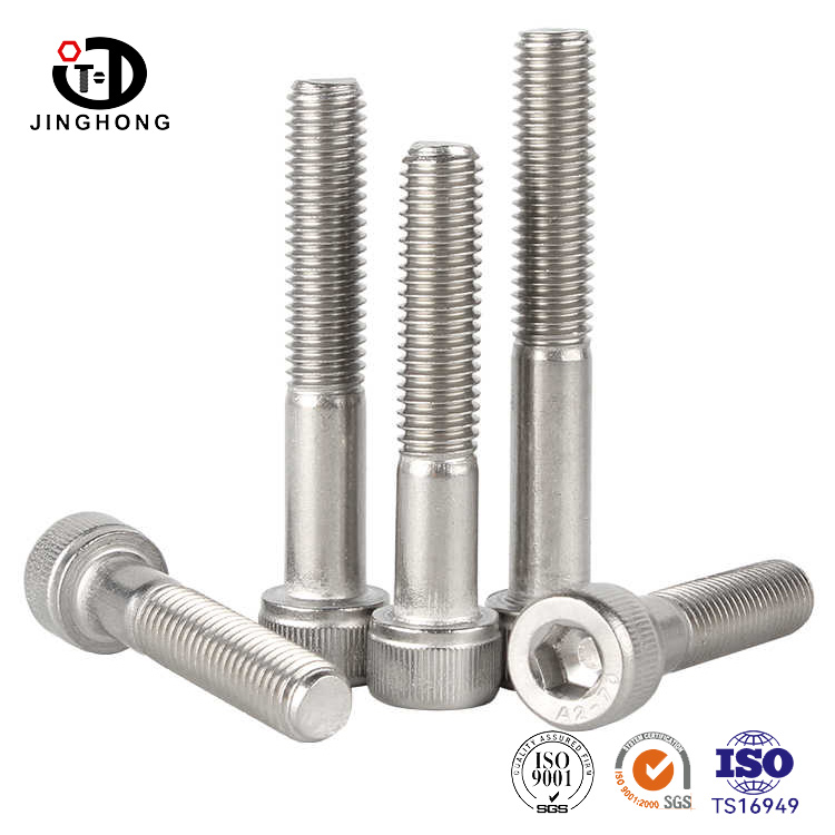 Producent Jinghong używa szybkich narzędzi do szlifowania do uderzenia drutu w głowice śrub i korpusów prętów za jednym razem, a konstrukcja walcowania głowicy poprawia ręczne tarcia instalacyjne. Ogólny kształt głowy jest cylindryczny, co zapewnia, że głowica śruby jest jednolicie obciążona, gdy kontaktuje się z podłączoną częścią, zmniejsza lokalne stężenie naprężeń i poprawia stabilność połączenia. Zewnętrzna średnica cylindrycznej głowicy jest zwykle większa niż średnica śruby, zapewniając wystarczającą powierzchnię obciążenia do połączenia i zapewniają stabilną wydajność po poddaniu dużych obciążeń.