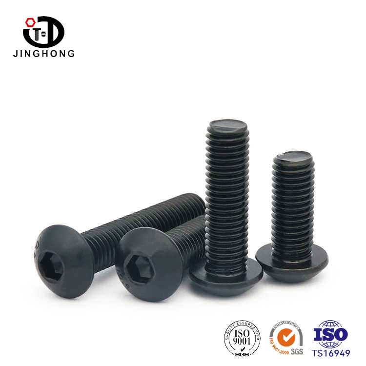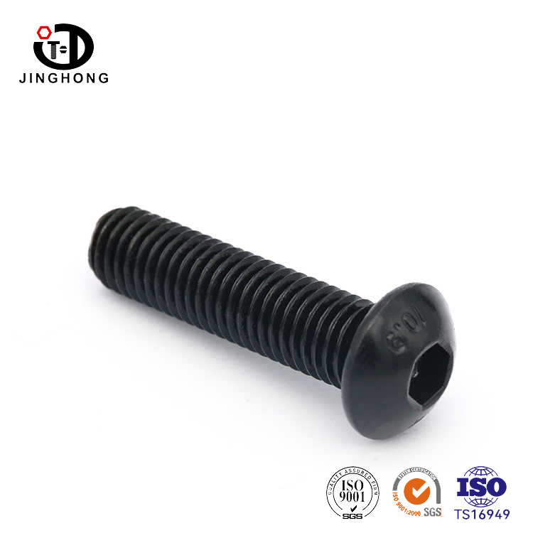 Przed meblami matowy czarny obróbka śrub i półkolistka konstrukcja głowy może zrównoważyć odporność na korozję i estetykę, spełniając wymagania nowoczesnego wystroju domu w celu uzyskania jakości szczegółowych informacji. Producent Jinghong używa multi-station na zimno, aby zmniejszyć defekty nici poprzez jednorazowy proces formowania. Za pomocą miernika Go No Go i urządzenia do obrazowania wątku do wykrywania parametrów, takich jak Pitch, zapewniająca dokładność dopasowania gwintu.