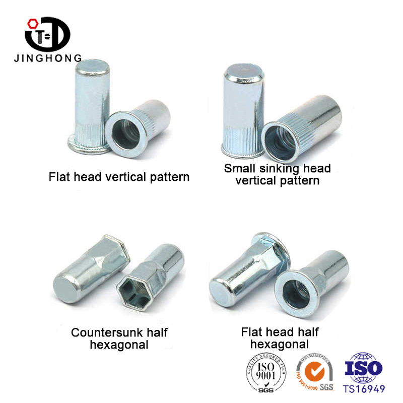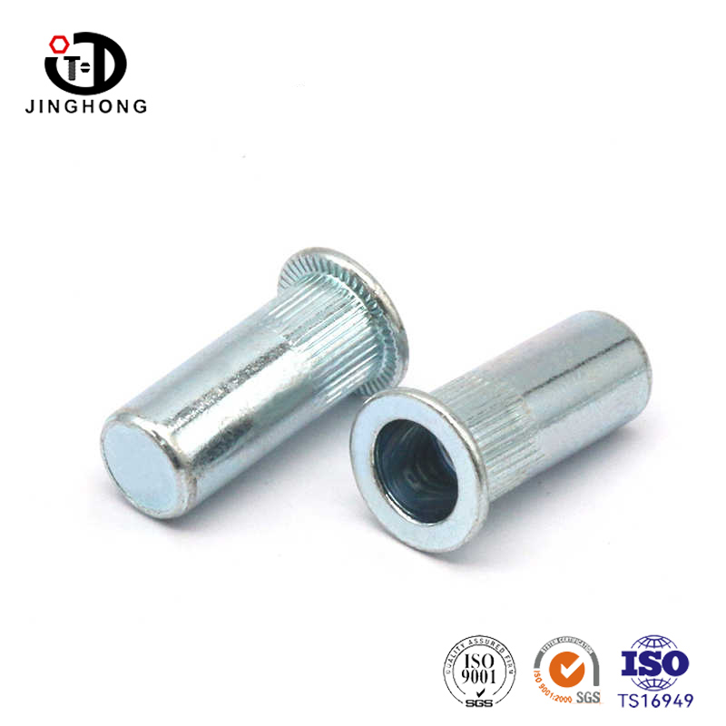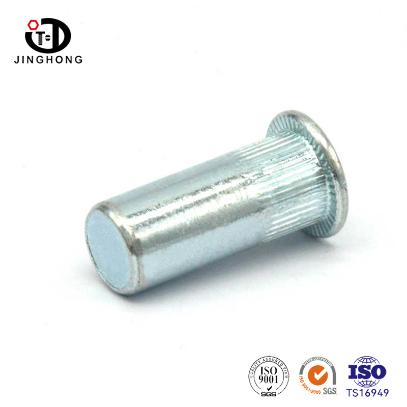 Nakrętka nitkowa gwintowana w ciemno jest nitowanym złączem z zamkniętym końcem i gwintowanym otworem na drugim końcu. Łączy technologię nitowania i funkcję orzechów, które mogą osiągnąć silne połączenie między częściami bez obsługi z tyłu. Ten projekt nie tylko upraszcza proces montażu, ale także znacznie poprawia wydajność połączenia i ogólną siłę struktury.
