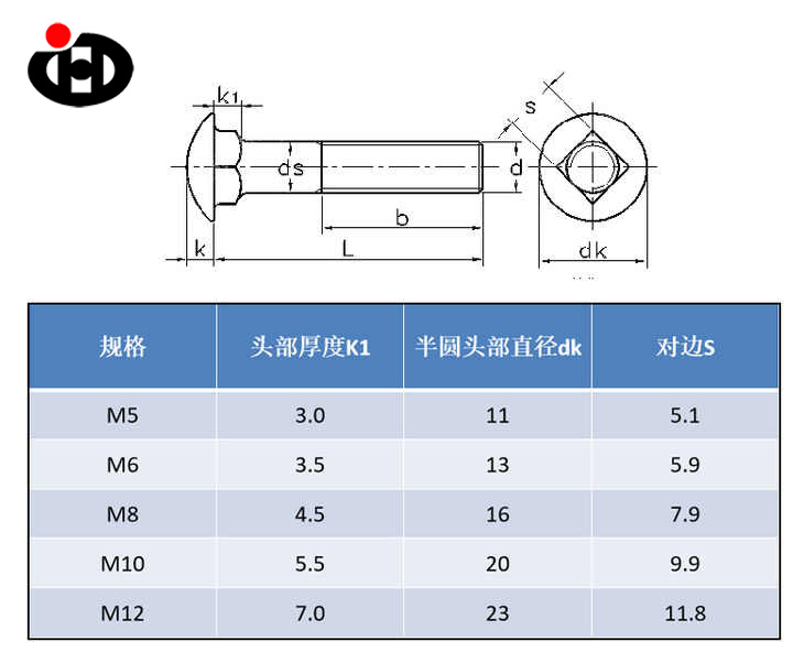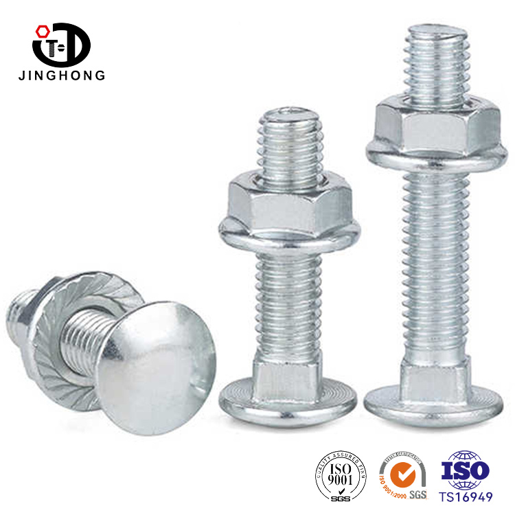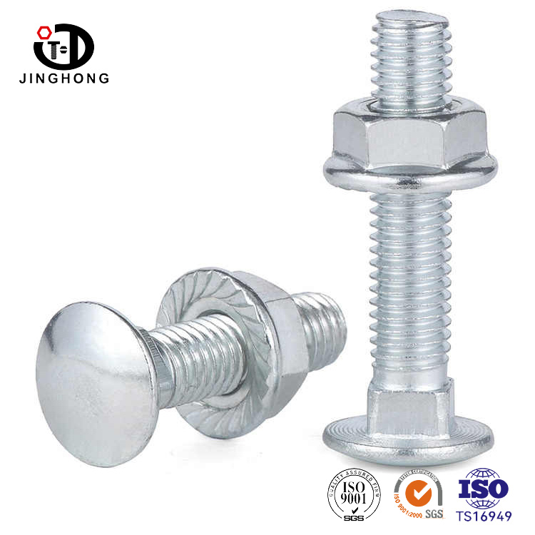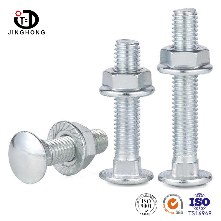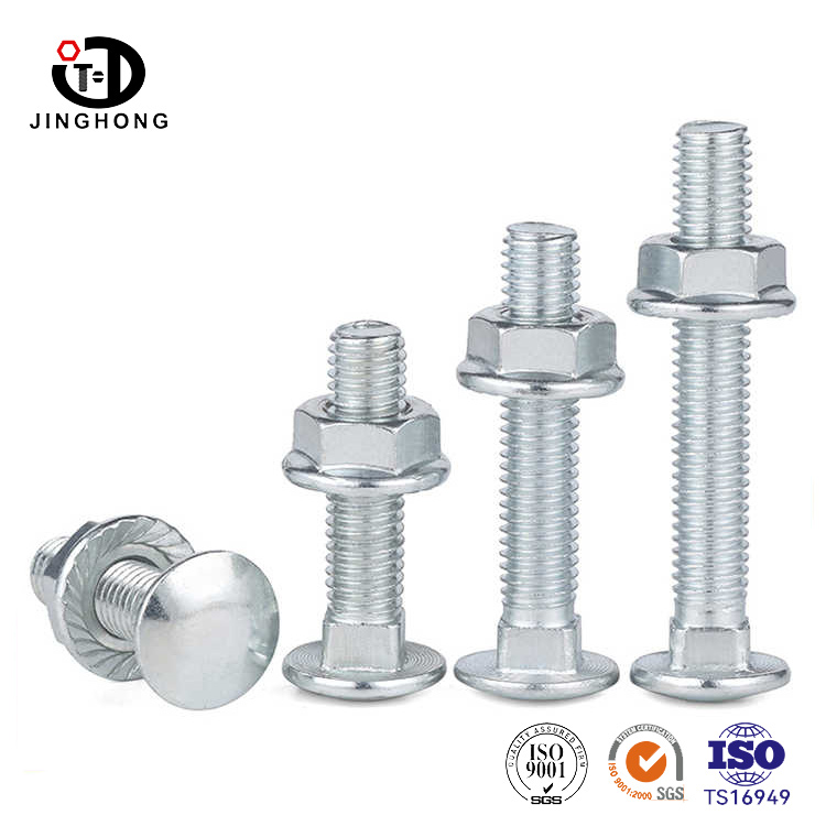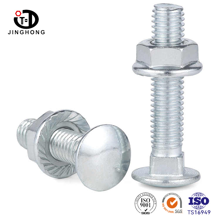 Kształt śruby powozowej jest jak delikatna grafika przemysłowa z okrągłą i pełną półkulową głową. Powierzchnia jest wypolerowana precyzyjną technologią kucia lub kucia, nadając jej unikalny połysk, a zaokrąglona krawędź jest gładka bez krawędzi i narożników. Kwadratowy blok szyi z ostrymi krawędziami jest osadzony w połączeniu między nitem kwadratowym konstrukcją szyi a okrągłą głową, z prostymi czterema bokami i gładkim i płaskim przekrojem.