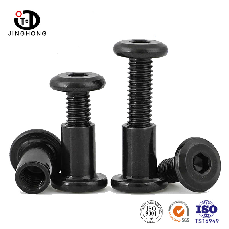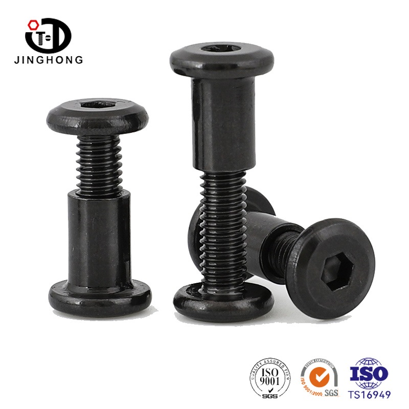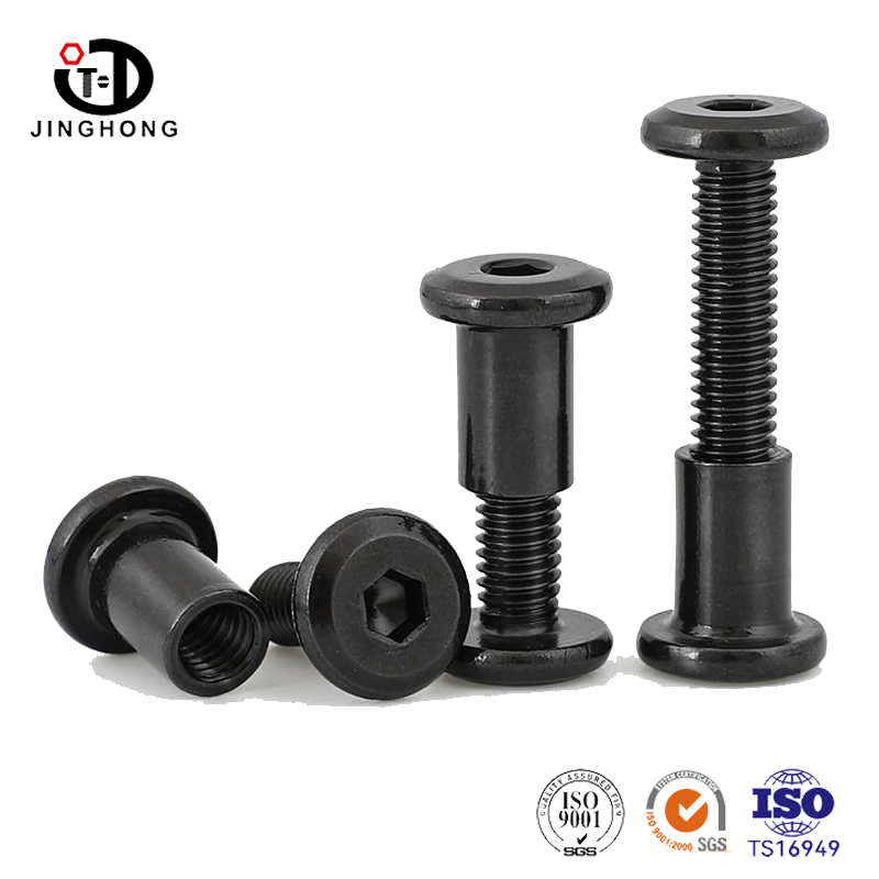 Śruby meblowe i nakrętki lufy są wykonane z wysokiej jakości stali nierdzewnej jako podłoża, z czarną powłoką utworzoną na powierzchni poprzez specjalne obróbkę utleniania. W porównaniu ze zwykłymi mocowaniami ze stali węglowej, ich odporność na korozję spray solnych zwiększa się o ponad trzykrotnie. Wewnętrzna konstrukcja groove heksagonalna jest dopasowana do klucza sześciokątnego, który może osiągnąć łatwe i wygodne przymocowanie.