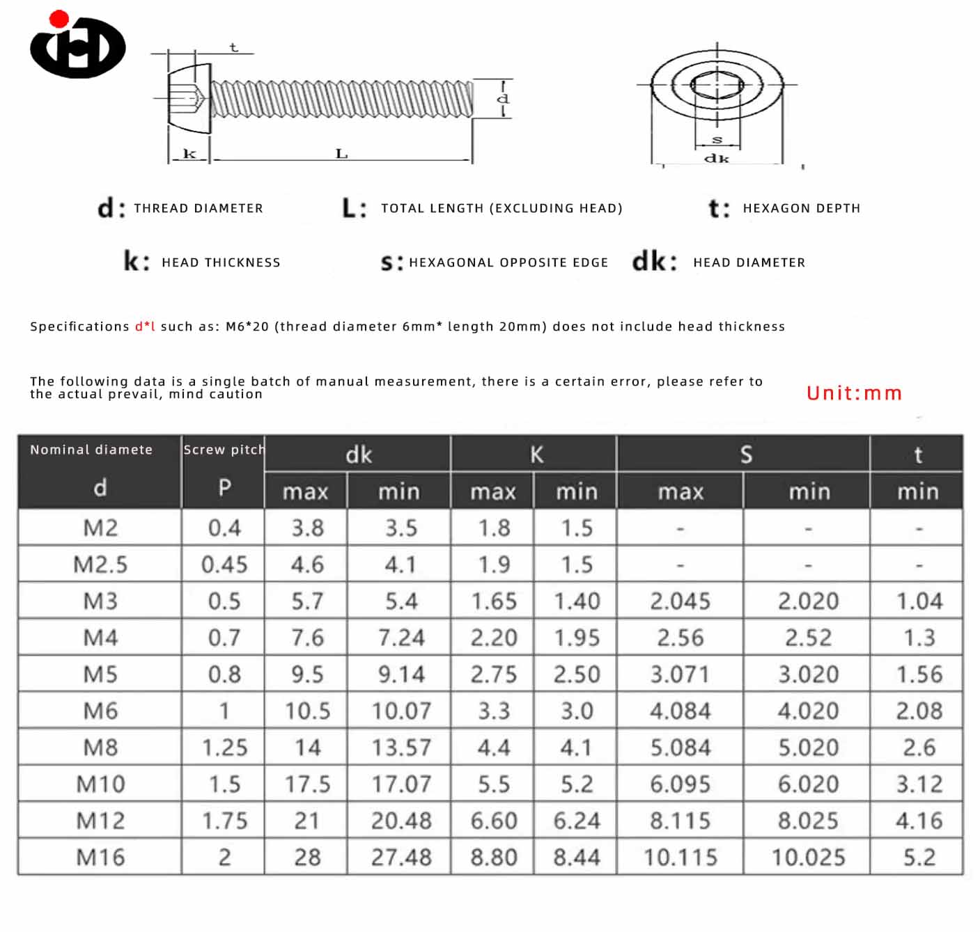 Półokrągłe śruby gniazda sześciokątnego mają dobrą odporność na zużycie i odporność na rdzę, mogą utrzymać dobrą jakość powierzchni i wydajność podczas długoterminowego użytkowania i nadają się do różnych trudnych środowisk. Standardowa cena Jinghong jest szeroko stosowana w branży lekkiej, częściach samochodowych, urządzeniach domowych, maszyn papierowych i innych branżach. Jesteśmy znanym prywatnym przedsiębiorstwem w chińskiej branży, z dużą skalą i pełnym zakresem standardowych i niestandardowych części. Koncentrujemy się na innowacjach produktów, z pełnym procesem produkcyjnym i bogatym doświadczeniem, dzięki czemu wszystkie produkty zgodne z standardami branżowymi i starały się zaspokoić potrzeby klientów krajowych i zagranicznych. Wybierz nasze produkty, jeśli masz jakieś pytania, skontaktuj się z nami bezpośrednio.