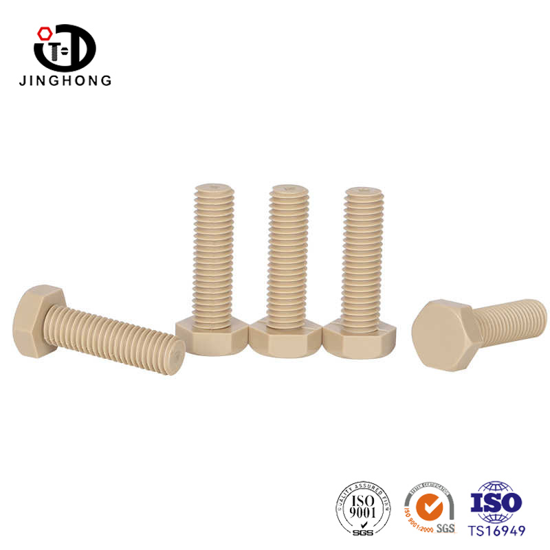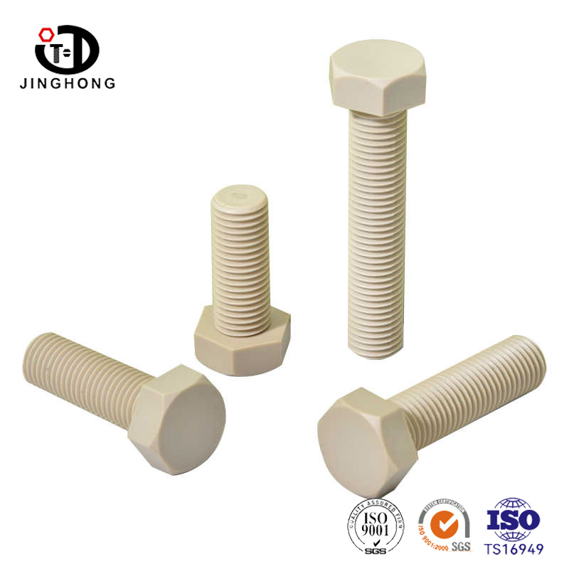 Plastikowa śruba sześciokątna jest wytwarzana przy użyciu technologii formowania wtrysku. Stopiąc żywicę PEEK w wysokiej temperaturze i wstrzykiwając ją do formy, złożone struktury można tworzyć za jednym razem bez potrzeby późniejszego obróbki temperamentu. W porównaniu z tradycyjnym kuciem śrub metalowych, cięciem i innymi procesami, formowanie wtryskowe znacznie zmniejsza koszty przetwarzania i cykli, zapewniając dokładność i spójność wymiarów produktu.