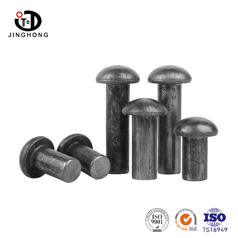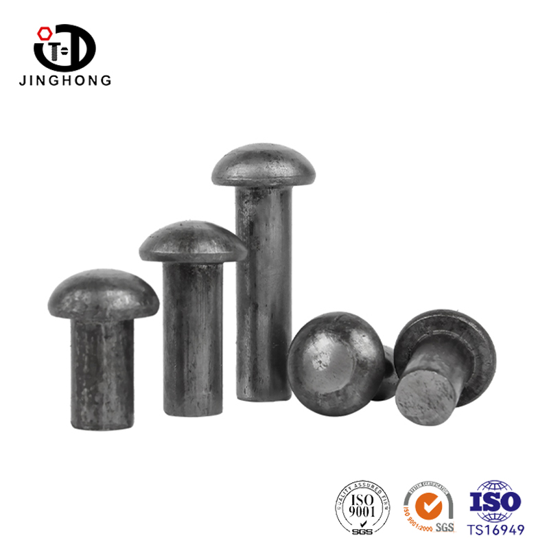 Solidowa głowa stała nit żelaza jest częścią mocowania. Solidny nitk -trzonowy ma wysoką wytrzymałość i stabilność do oporu wysokiej siły rozciągania i ścinania na połączeniu.