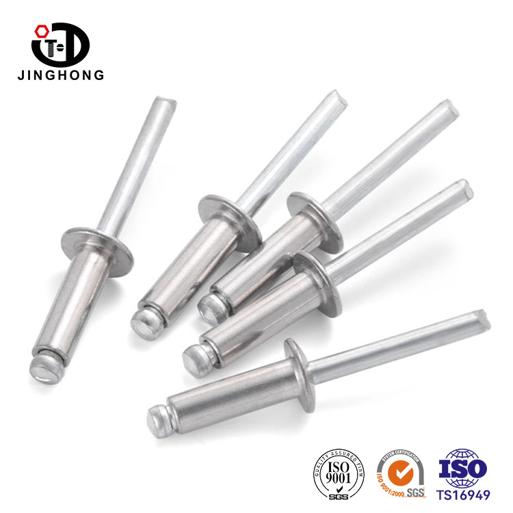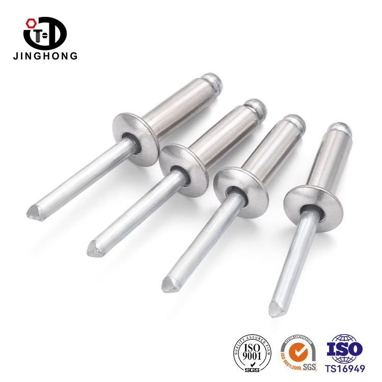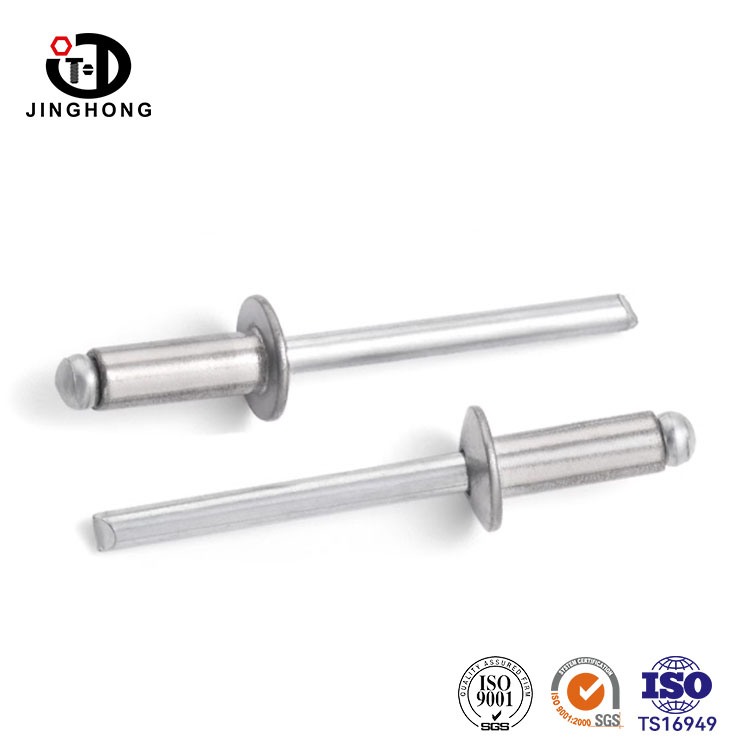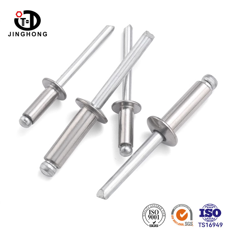 Not typu otwartego końca Jinghong ma charakterystykę łatwej instalacji, wysokiej wytrzymałości, szerokiej możliwości zastosowania, dobrej wydajności przeciwkołaniowej i różnorodności materialnej. Instalację można zakończyć za pomocą narzędzi takich jak pistolet do nitów, dzięki czemu proces jest szybki i wydajny, co jest idealne do masowej produkcji lub sytuacji, w których przestrzeń instalacyjna jest ograniczona. Nie ma potrzeby przetwarzania drugiej strony materiału, dzięki czemu są szczególnie odpowiednie do mocowania cienkich materiałów. SS304 Rivet typu otwartego końca może być wykonany ze stali nierdzewnej, aluminium, miedzi lub stopów, umożliwiając użytkownikom wybór różnych materiałów na podstawie środowiska w celu spełnienia wymagań dotyczących odporności na korozję lub wytrzymałości.