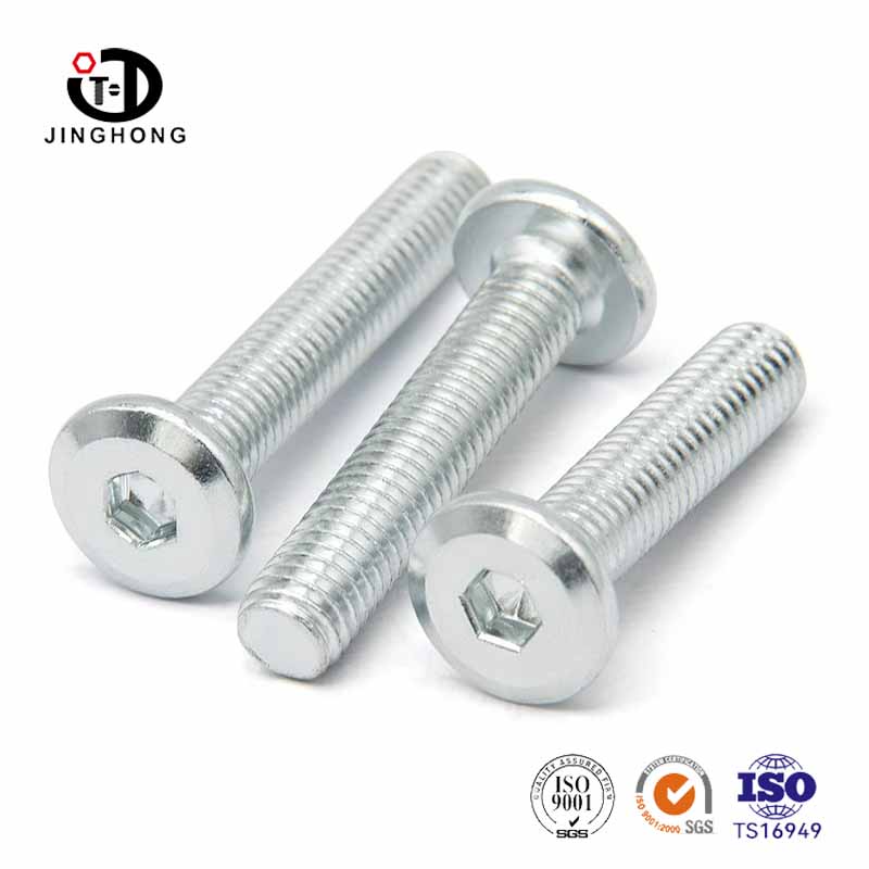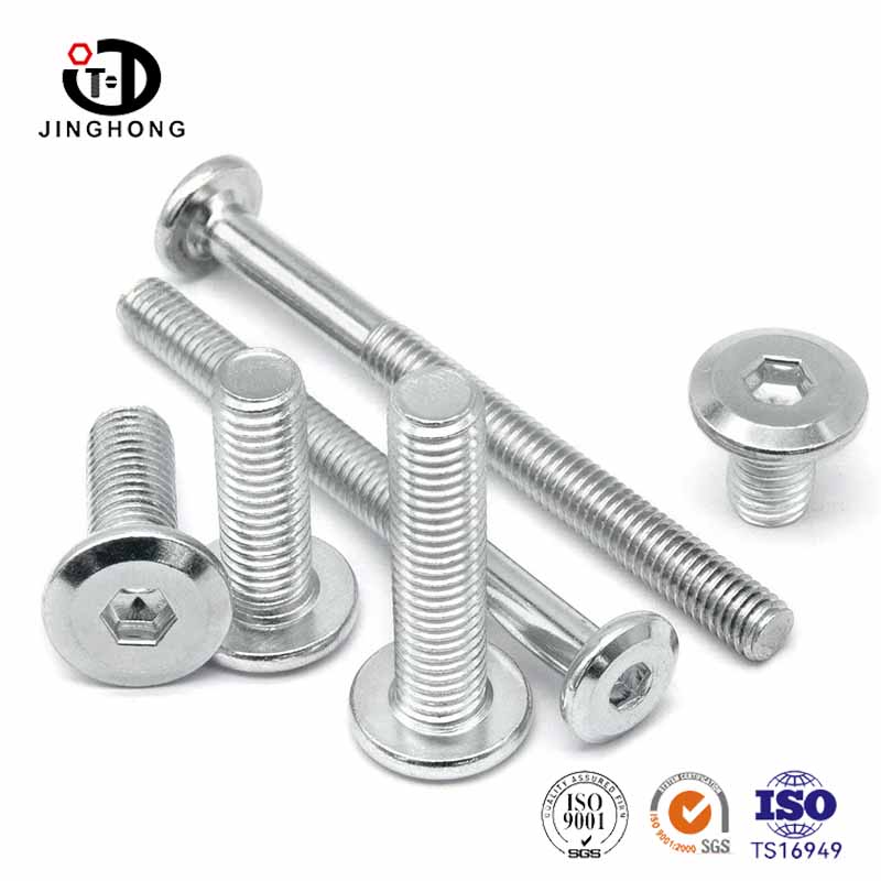 Płaska śruba meblowa sześciokąta cynku, zaprojektowana specjalnie do montażu i połączenia mebli. Sześciokątna głowica jest jedną z najważniejszych cech płaskich mebli z płaską głowicą cynku, która może zapewnić większy moment obrotowy, dzięki czemu śruba może być mocno przymocowana do mebli, i łatwa w obsłudze różnych narzędzi do klucza, poprawiając wydajność instalacji i demontażu.